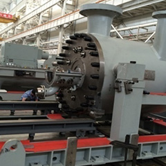 EBZ系列筒式離心壓縮機(jī)用于石油、化工等工業(yè)領(lǐng)域,用于輸送空氣、混合冷劑等高壓、有毒、易燃易爆等介質(zhì)。外缸為整體筒形,屬于多級、高速、雙支承結(jié)構(gòu),帶中間冷卻器。 可通過變速器由電機(jī)驅(qū)動或直接由高速汽輪機(jī)或電機(jī)驅(qū)動。 機(jī)型涵蓋共計(jì)10個(gè)機(jī)型,流量覆蓋范圍從20~2200m 3/min,排氣壓力最高可達(dá)15MPa。 采用系列化設(shè)計(jì)及高效三元流葉輪,對模型級進(jìn)行合理匹配,在實(shí)現(xiàn)不同壓比的客戶需求時(shí),保證壓縮機(jī)效率。 該壓縮機(jī)檢修維護(hù)時(shí),可直接將轉(zhuǎn)子和內(nèi)定子抽出檢修,無需拆卸管路。壓縮機(jī)內(nèi)缸帶有水平分型面,維護(hù)檢修方便。 進(jìn)排氣風(fēng)筒可靈活設(shè)計(jì),管口位置可根據(jù)工藝管位置而設(shè)定。 該系列壓縮機(jī)采用成熟可靠的模型級和先進(jìn)的氣動計(jì)算程序,經(jīng)機(jī)組現(xiàn)場運(yùn)行驗(yàn)證和評估,達(dá)到了國際先進(jìn)水平。 -