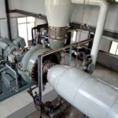 EGV系列水蒸氣離心壓縮機(jī)適用于MVR蒸發(fā)系統(tǒng)中,廣泛應(yīng)用于化學(xué)工業(yè)(蒸發(fā)、結(jié)晶、提純、濃縮)、廢水處理(含鹽廢水、含重金屬廢水等)、制藥(維生素等)、食品、添加劑工業(yè)(味精、大豆、蛋白質(zhì)乳液的蒸發(fā))、飲料工業(yè)(牛奶,果汁,乳清,糖溶液的蒸發(fā))等。 屬于單級、高速、單懸臂結(jié)構(gòu),壓縮機(jī)軸端密封采用碳環(huán)密封。該壓縮機(jī)葉輪和蝸殼安裝在高速齒輪箱上,與齒輪箱成為整體,由電機(jī)驅(qū)動。機(jī)型涵蓋以下共計(jì)16個(gè)機(jī)型:28/31/35/40/45/50/56/63/71/80/90/100/112/125/140/160。采用系列化設(shè)計(jì)及高效的三元流開式葉輪,機(jī)殼采用鑄不銹鋼整體鑄造。 壓縮機(jī)為整體撬裝結(jié)構(gòu),單層布置,軸向進(jìn)氣,結(jié)構(gòu)緊湊,占地面積小,安裝周期短,易于維修,占用資源較少,便于安裝找正、維護(hù)。 油站兼具底座功能,潤滑系統(tǒng)整體撬裝于底座上,節(jié)約管路、專用底座等成本;采用方便拆卸、維護(hù)的葉輪連接方式;帶有盤車結(jié)構(gòu),方便保養(yǎng)。該壓縮機(jī)可采用進(jìn)口導(dǎo)葉調(diào)節(jié)方式,滿足較寬的流量變化工況,調(diào)節(jié)范圍寬,達(dá)75%~105%。 該系列壓縮機(jī)采用成熟可靠的模型級和先進(jìn)的氣動計(jì)算程序,壓縮機(jī)效率可達(dá)87%,經(jīng)機(jī)組現(xiàn)場運(yùn)行驗(yàn)證和評估,達(dá)到了國際先進(jìn)水平。